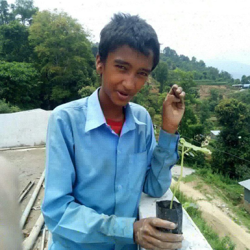 He walks about an hour to reach school. He pass by a barren hill in his way. So he suggests to plant trees in the land. May it be done soon!!!